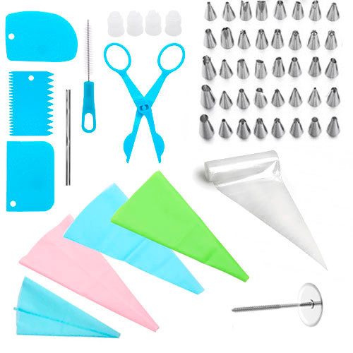 Набір кондитерських інструментів для декорування тортів, кексів та інших кондитерських виробів. Поставляється в зручному пластиковому кейсі.
